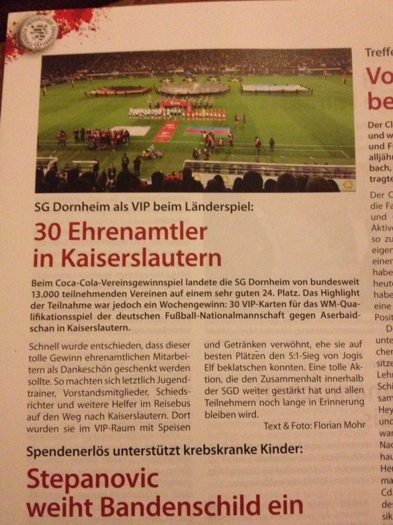 SGD im „Hessen Fussball“ In der aktuellen Ausgabe des „Hessen Fussball“, dem offiziellen Organ des hessischen Fußballverbandes, wird nochmal auf den Besuch unserer ehrenamtlichen Mitstreiter zum Länderspiel nach Kaiserslautern geschaut.