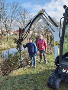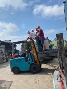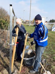 Jahrelang schlummerten bei der Firma Grashüpfer in Dornheim die Zaunbegrenzungselemente der Firma Komatsu vor sich hin. Doch das ist Geschichte. Ende letzten Jahres wurden diese auf das Riedsportfeld transportiert und in einer zweimonatigen Aktion (150 Arbeitsstunden) von den drei ‚Zaunkönigen‘ ein neuer Zaun entlang des Kunstrasenfeldes Richtung Scheidgraben errichtet. Zu kämpfen hatte das Trio u.a. mit recht unebenem Gelände oder ‚beerdigten‘ Betonteilen, die noch von der alten Tribüne am Sportplatz herrühren. Für die Erstellung hatten Udo (der Schrauber) und Horst (der Rührer) den Zapfhahn des Fördermobils bzw. die Grillzange mit Schaufel und Betonmischer vertauscht. Edgar begleitete das Projekt als Handlanger. Ende Mai konnte dann das letzte Element vor der Bachbrücke anbracht werden. Man sieht: es gibt, trotz Pandemie, immer was zu tun.