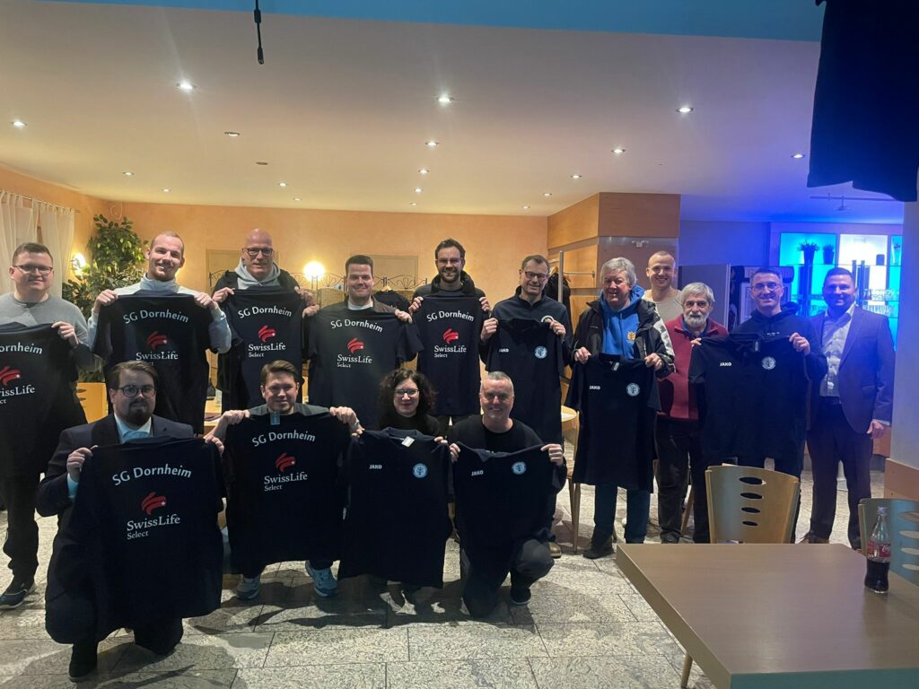 Die SG Dornheim bedankt sich bei der Fa. Swiss Life Select für die Unterstützung bei der Anschaffung neuer Polo-Shirts für insgesamt 25 Ehrenämtler. Mathias Kudla, zuständig für den Bereich Partnerschaften: „Ich möchte mich ausdrücklich bei den Herren Daniel Schadt und Luka Markovic für den guten Austausch und die großartige Unterstützung bedanken. Es freut mich sehr, das wir durch die Swiss Life Select auch mal unseren ehrenamtlichen Helfern etwas Gutes tun konnten.“
