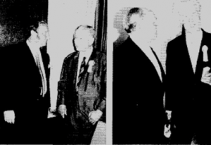 Männer die sich um den Sportverein verdient machten. Der ehemalige Vorsitzende Dr. Skala im Gespräch mit Ehrenvorsitzendem Jakob Rückert (links) und der mehrjährige Vorsitzende Karl Schlegel mit Philipp Balzer (rechts).